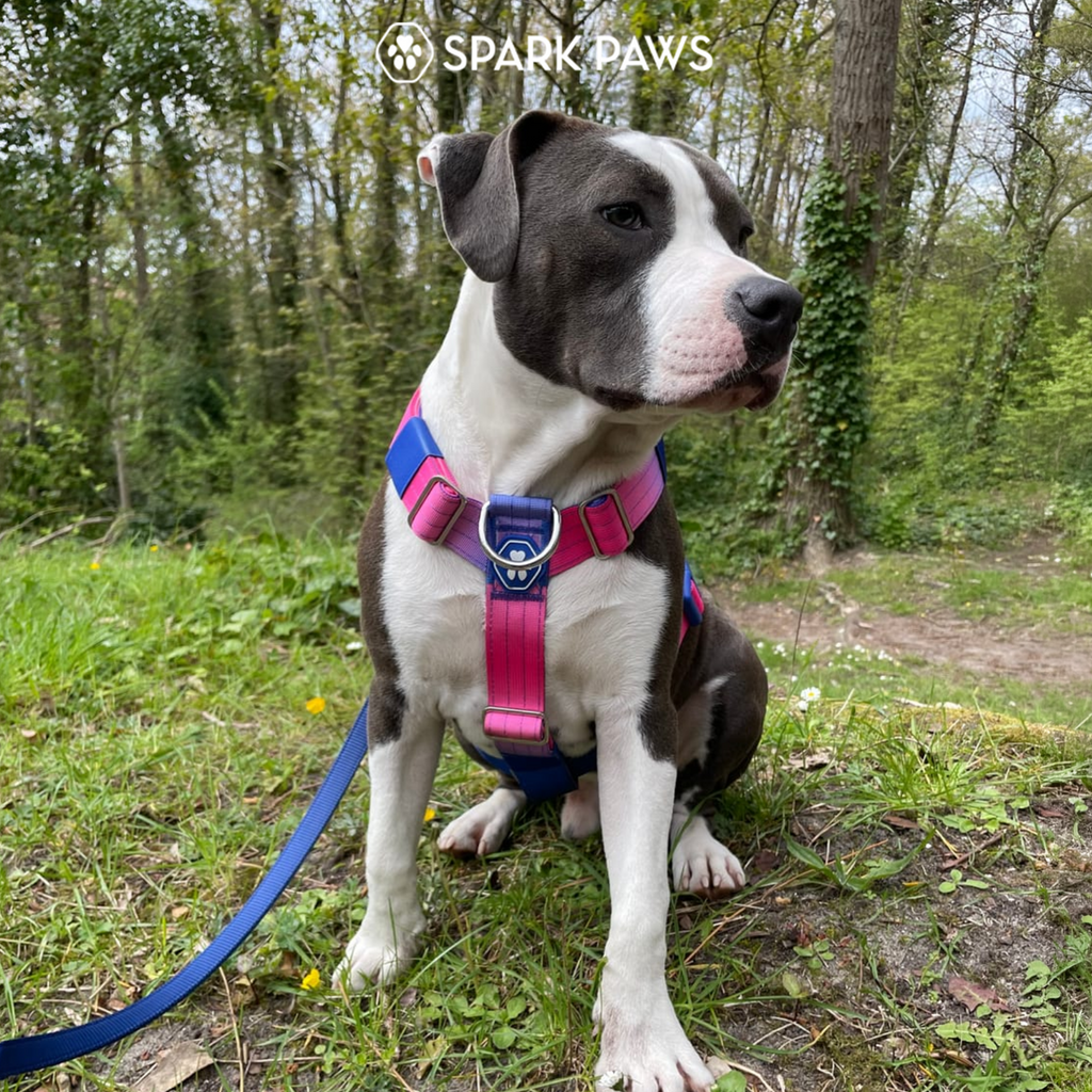 Jedes Set besteht aus einem No-Pull Hundegeschirr, einer passenden Neoprenleine und einem Poop bag carrier.