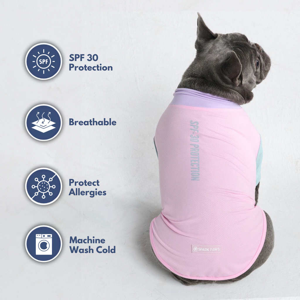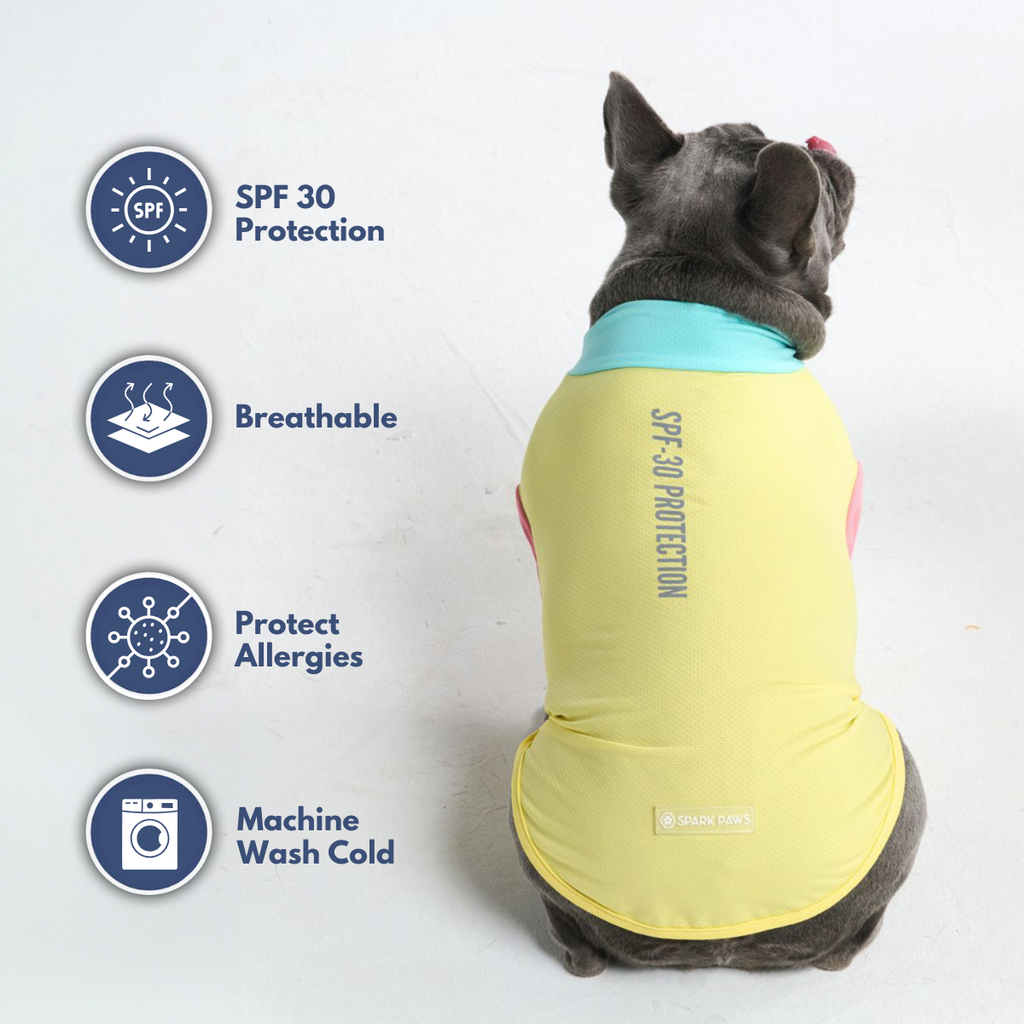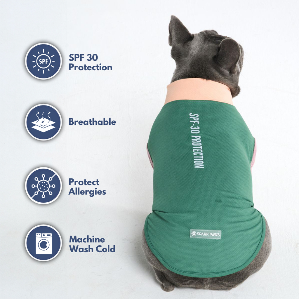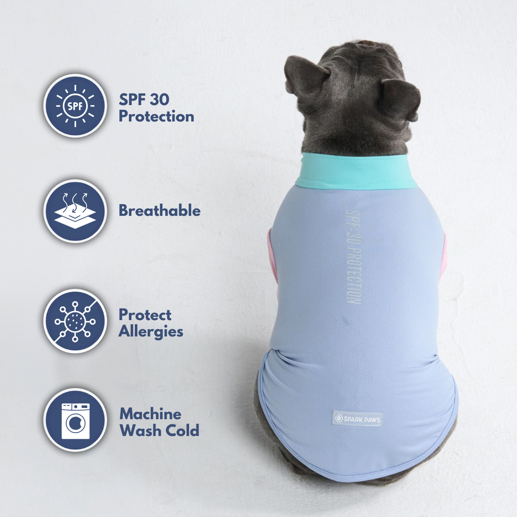 Schütze deinen Hund vor der Sonne mit unserem SPF-30 Sonnenblock-Hundeshirt, das 97% der schädlichen UVB-Strahlen blockt, während es deinen Hund sauber und allergenfrei hält.